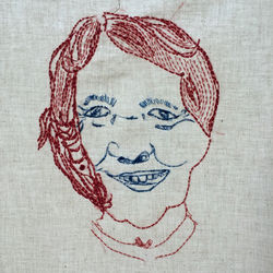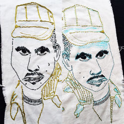 Later that summer I decided to sketch one of the portraits on black linen (with my left hand--I'm right-handed) so that I could make an embroidery. The set was complete in January 2016.